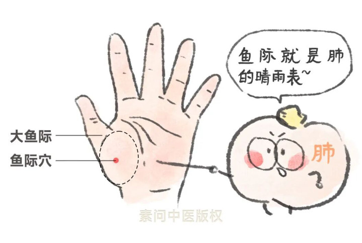 鱼际为肺气所溜,望鱼际可候肺气。“肺出于少商……溜于鱼际,鱼际者,手鱼也”——《灵枢》